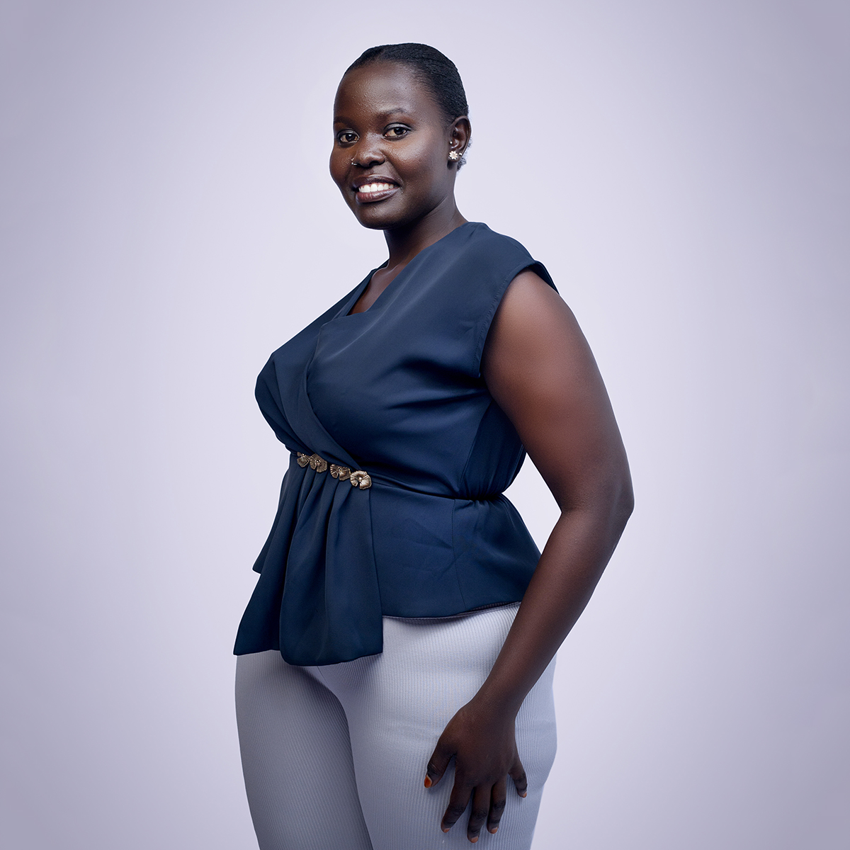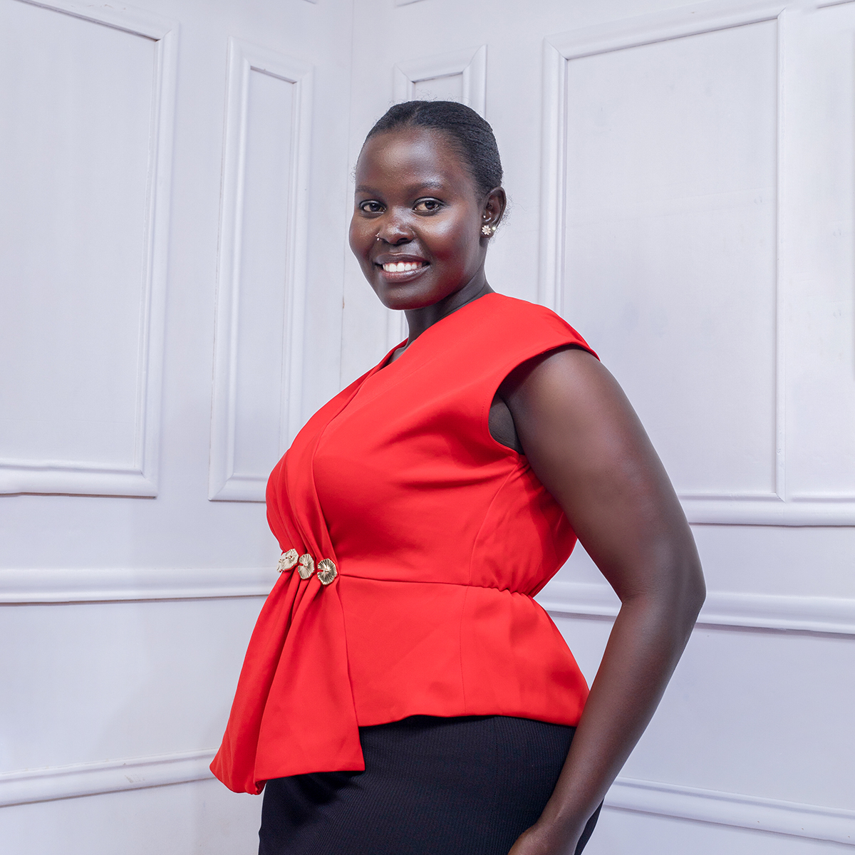 Classic waist-accent buttons that enhance shape and add a polished, elegant finish to the garment.